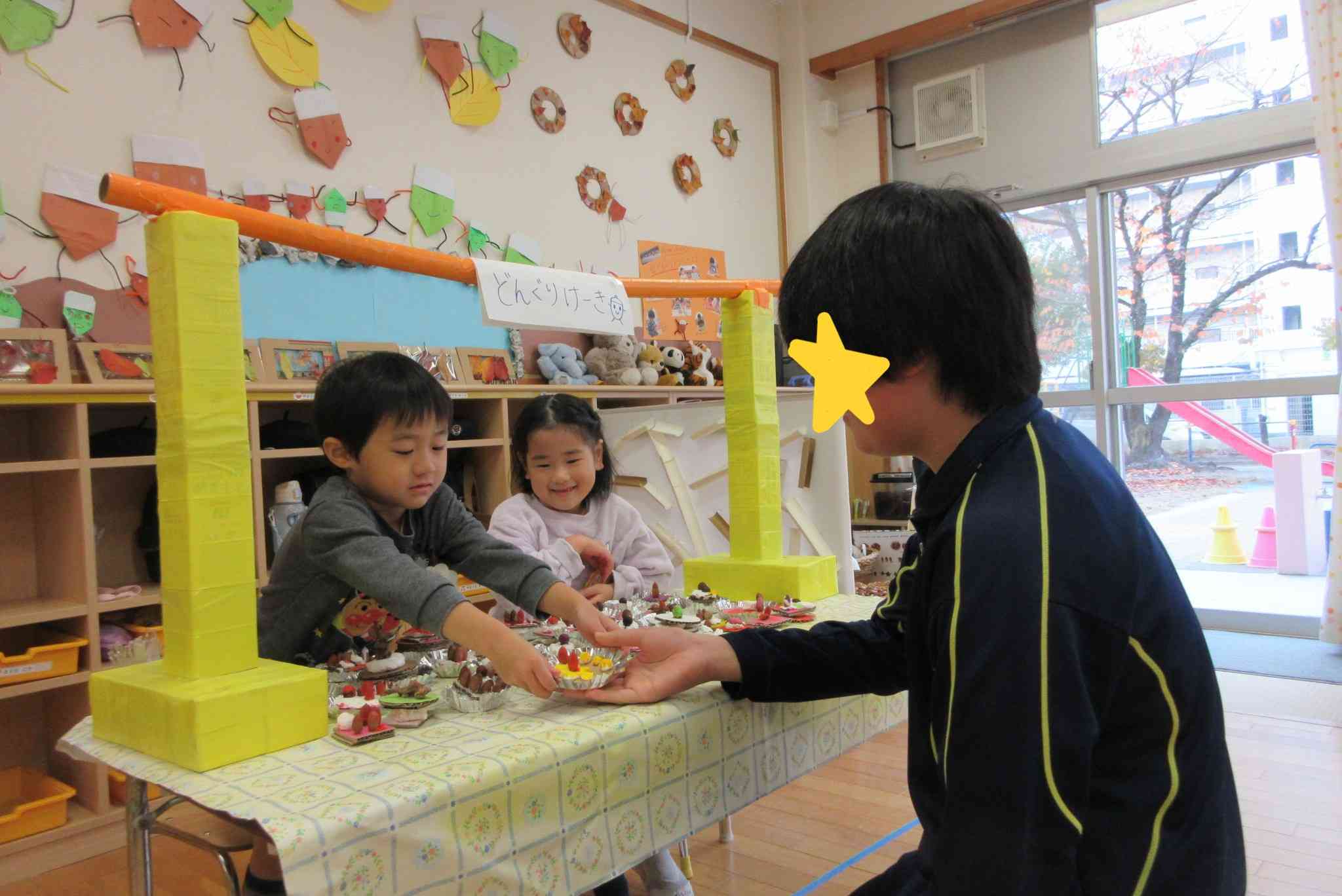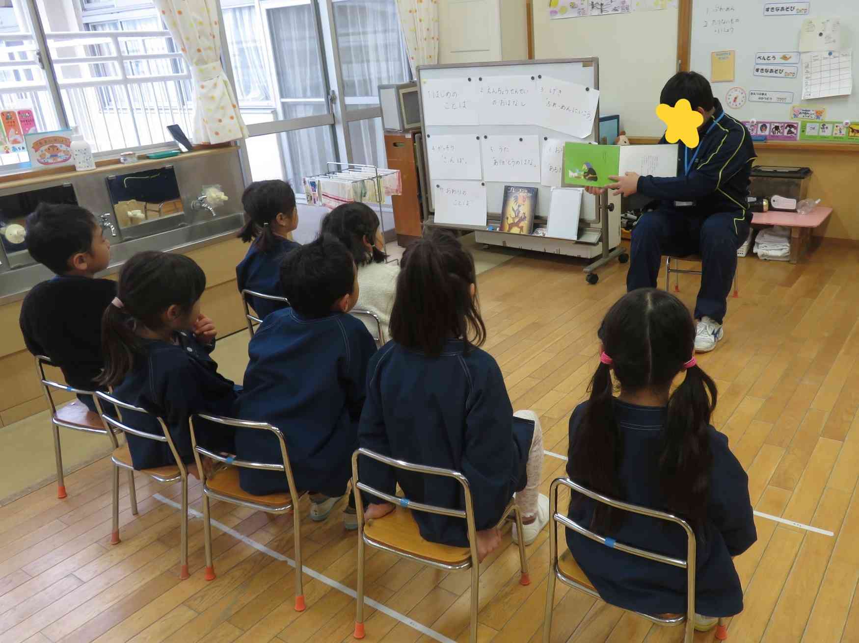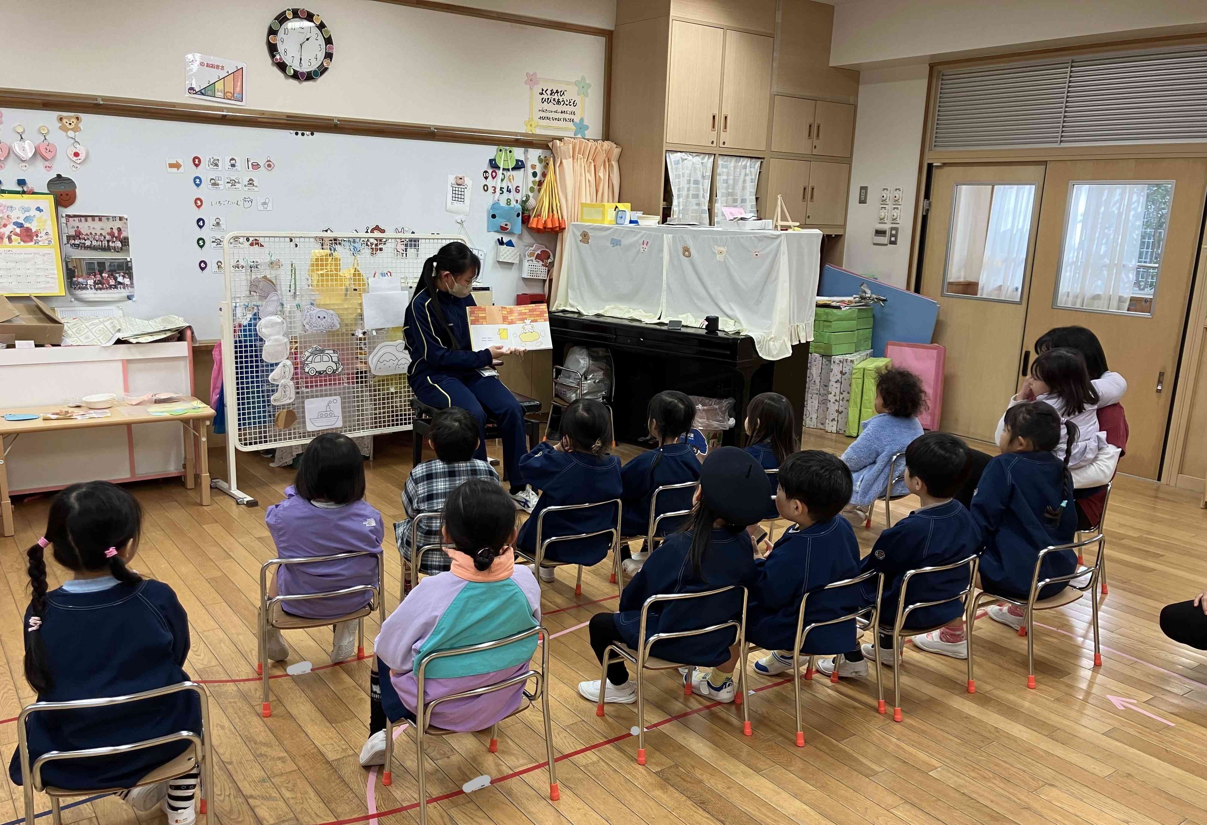 第三砂町中学校の2年生3名が11月26日から28日までの3日間、職場体験として第五砂町幼稚園に来てくださいました。 お兄さん、お姉さんと遊ぶことが大好きな第五砂町幼稚園のこどもたちは、一緒にかけっこをしたり、お弁当を食べたりして過ごしました。また、どの学級でも中学生さんが幼稚園のこどもに見せたい絵本を選んできて、絵本の読み聞かせをしてくれました。年長そら組では、今日のお当番さんが、『本日の幼稚園で楽しかったこと』を話すのですが、「〇〇お兄さん先生と遊んだことが楽しかったです!」と言っていました。【添付ファイル】